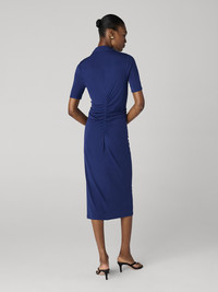 Made from a soft matte jersey, the Zoey midi dress has a soft feel and a smooth finish. - V-neckline - Classic collar - Short sleeves - Buttons down the front - Ruched bodice - Close fit - Centered slit Size & Fit Naki is 5'11" and is wearing a size XS Fabric & Care A soft, smooth jersey with a clean finish that takes well to bright colors and bold prints. 100% Viscose