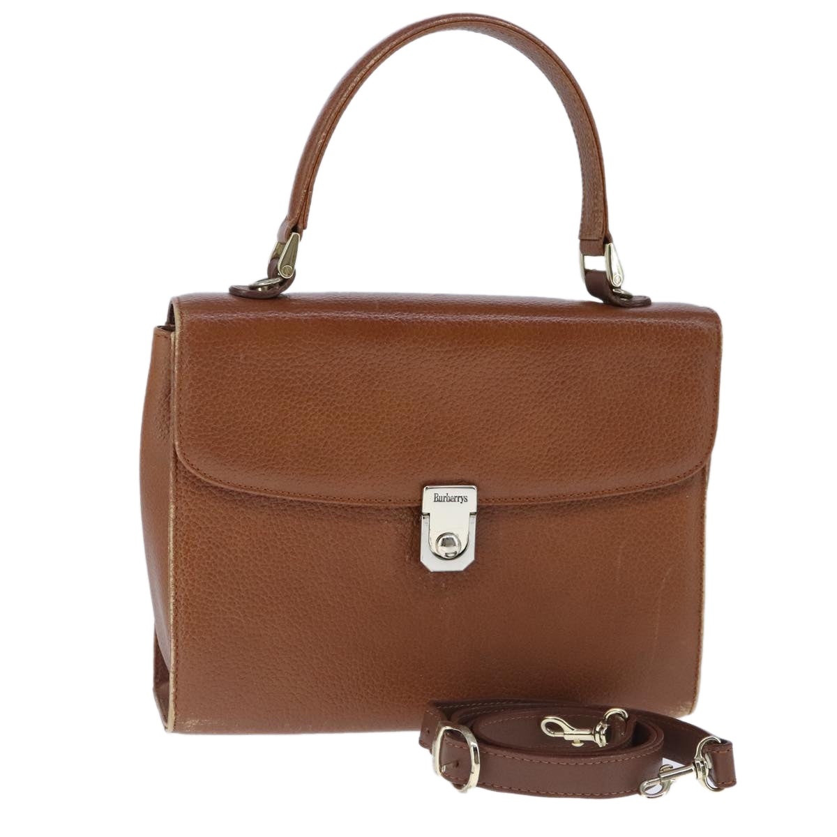 Burberry Hand Bag Leather Brown Size (CM): W24 x H20 x D9 cm (Approx.) Size (IN): W9.4 x H7.9 x D3.5in (Approx.) Accessories: Shoulder Strap Overall: Surface: Rubbing Slight Lose Shape Handle: Rubbing Shoulder Strap: Rubbing Metal Fittings: Scratches, Slight Painting Off Corners: Rubbing Inside: Rubbing Pockets: Rubbing, Slight Stain Eastern Is An Authorized Online Retailer Of Luxury Fashion We Guarantee The Authenticity Of All Our Items With Rigorous Verification Processes And Trusted Sourcing Please Carefully Refer To The Photos For The Condition Of The Item Import Charges May Apply For Specific Items And Are The Buyer's Responsibility Sales Are Final Contact Us If You Have Any Questions, We're More Than Happy To Assist!