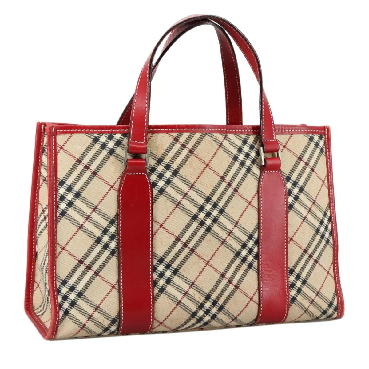 Burberry Nova Check Blue Label Hand Bag Canvas Beige Size (CM): W33 x H21 x D12 cm Handle Drop: 12cm (Approx.) Size (IN): W13.0 x H8.3 x D4.7in Handle Drop:4.7in (Approx.) Overall: Surface: Shape Loss, Rubbing Stain Leather: Rubbing Handle: Rubbing, Slight Shape Loss Scratches Metal Fittings: Scratches Corners: Rubbing, Shaved Inside: Rubbing, Slight Stain Pockets: Rubbing, Slight Stain Eastern Is An Authorized Online Retailer Of Luxury Fashion We Guarantee The Authenticity Of All Our Items With Rigorous Verification Processes And Trusted Sourcing Please Carefully Refer To The Photos For The Condition Of The Item Import Charges May Apply For Specific Items And Are The Buyer's Responsibility Sales Are Final Contact Us If You Have Any Questions, We're More Than Happy To Assist!