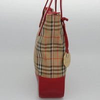 Burberry Nova Check Hand Bag Canvas Beige Red