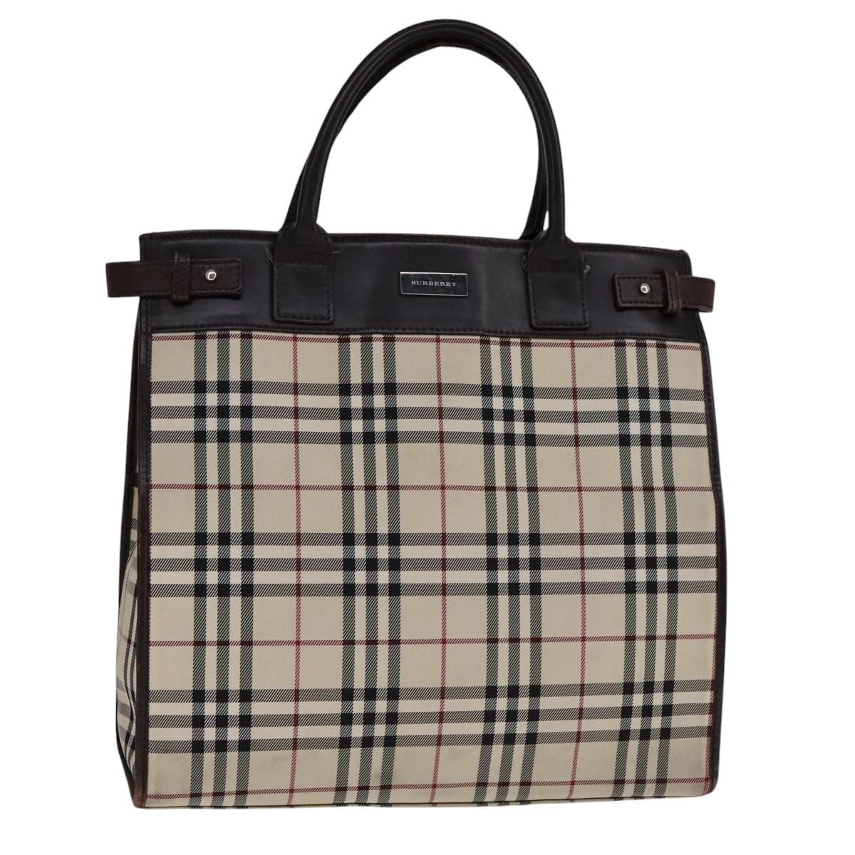 Burberry Nova Check Hand Bag Canvas Leather Beige Brown Silver Size (CM): W34 x H32 x D14 cm Handle Drop: 13cm (Approx.) Size (IN): W13.4 x H12.6 x D5.5in Handle Drop:5.1in (Approx.) Overall: Surface: Shape Loss, Rubbing Stain Leather: Rubbing, Stain Scratches Handle: Rubbing, Shape Loss, Slight Stain Shaved Metal Fittings: Scratches Corners: Rubbing Inside: Rubbing, Slight Stain Pockets: Rubbing, Slight Stain, Partly Tear There Is A Hole In The Pocket Due To Charring. Eastern Is An Authorized Online Retailer Of Luxury Fashion We Guarantee The Authenticity Of All Our Items With Rigorous Verification Processes And Trusted Sourcing Please Carefully Refer To The Photos For The Condition Of The Item Import Charges May Apply For Specific Items And Are The Buyer's Responsibility Sales Are Final Contact Us If You Have Any Questions, We're More Than Happy To Assist!