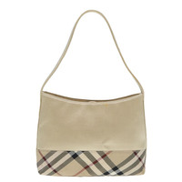 Burberry Nova Check Hand Bag Nylon Beige Silver