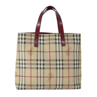 Burberry Nova Check Hand Bag Pvc Leather Beige