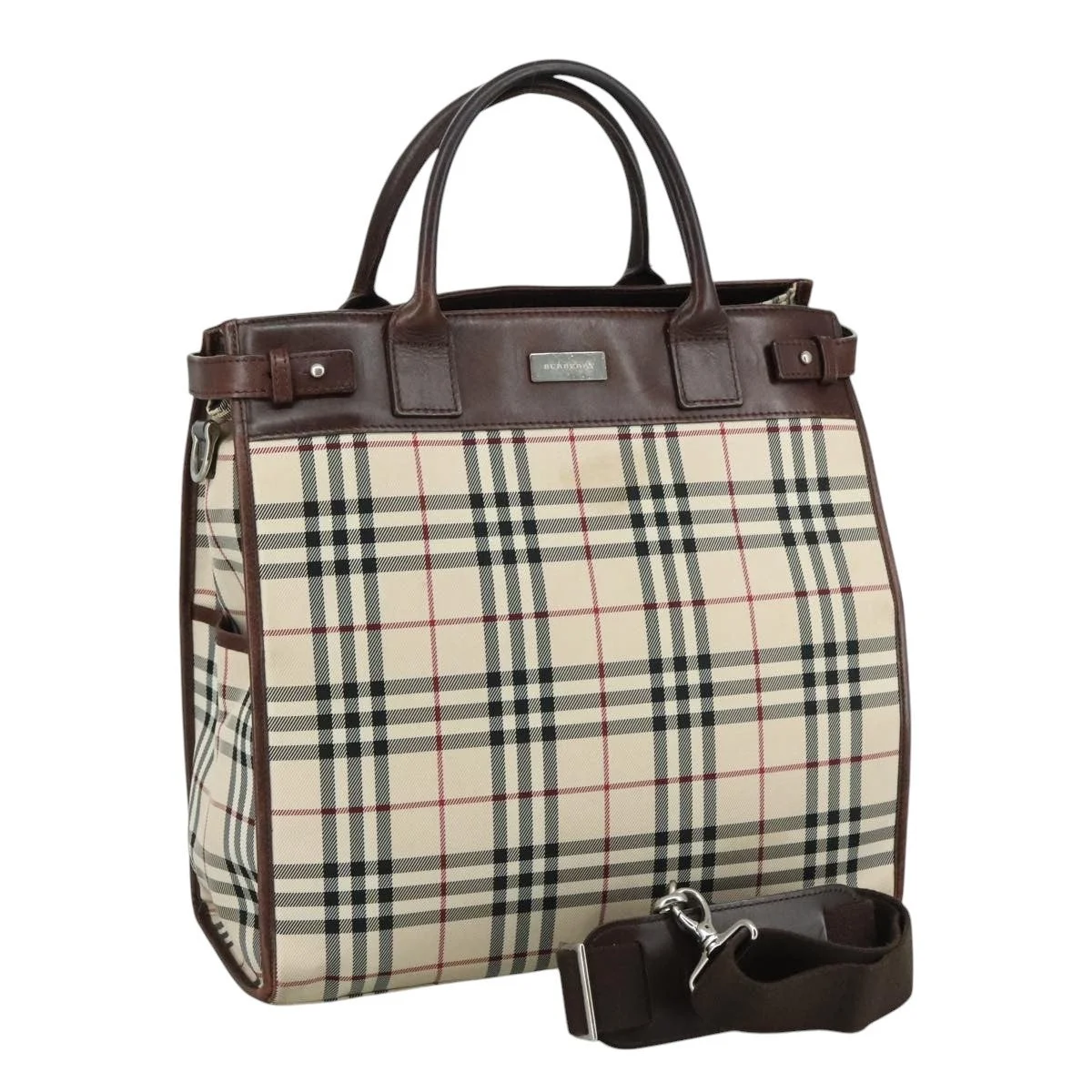 Burberry Nova Check Tote Bag Canvas Leather Beige Brown Silver Size (CM): W33 x H33 x D13 cm Shoulder Drop: 27 - 54cm Handle Drop:11cm (Approx.) Size (IN): W13.0 x H13.0 x D5.1in Shoulder Drop:10.6 - 21.3in Handle Drop:4.3in (Approx.) Accessories: Shoulder Strap Overall: Surface: Shape Loss, Rubbing Stain Leather: Rubbing, Stain, Scratches Slight Crack Handle: Rubbing, Scratches Partly Lose Shape Shoulder Strap: Rubbing, Slight Stain Partly Lose Shape Metal Fittings: Scratches Corners: Rubbing, Shaved Inside: Rubbing, Tear, Slight Stain Pockets: Rubbing, Tear Eastern Is An Authorized Online Retailer Of Luxury Fashion We Guarantee The Authenticity Of All Our Items With Rigorous Verification Processes And Trusted Sourcing Please Carefully Refer To The Photos For The Condition Of The Item Import Charges May Apply For Specific Items And Are The Buyer's Responsibility Sales Are Final Contact Us If You Have Any Questions, We're More Than Happy To Assist!