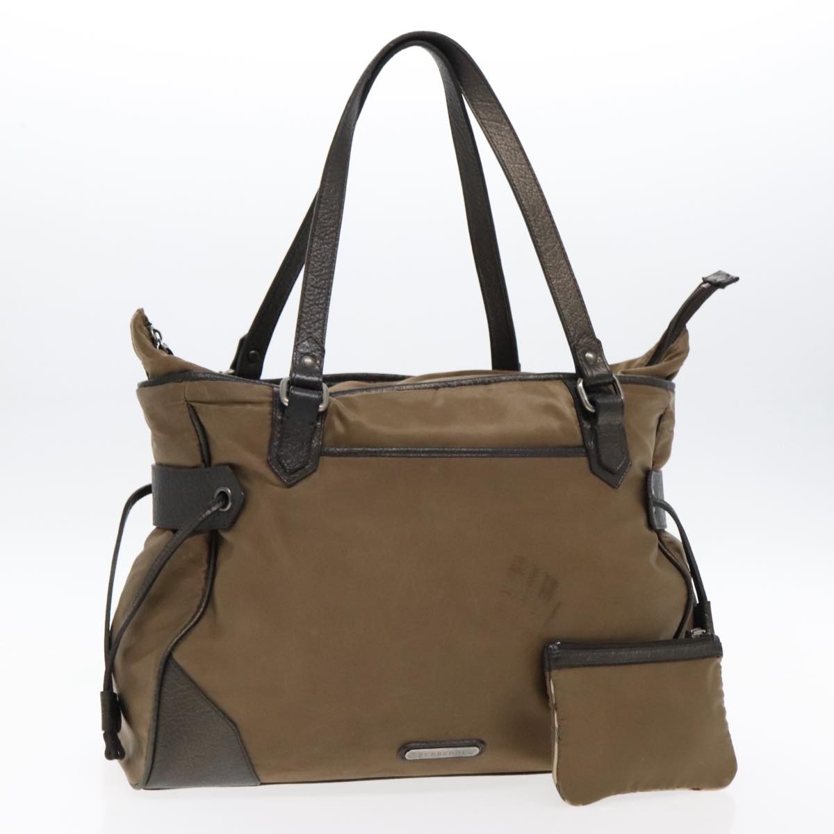 Burberry Tote Bag Nylon Leather Brown Dark Brown Silver Size (CM): W38 x H27 x D15 cm Handle Drop: 24cm (Approx.) Size (IN): W15.0 x H10.6 x D5.9in Handle Drop:9.4in (Approx.) Accessories: Pouch Overall: Surface: Shape Loss, Rubbing, Stain, Scratches Partly Thread Fray Leather: Rubbing Scratches Handle: Rubbing Scratches Metal Fittings: Scratches, Painting Off Corners: Rubbing, Shaved, Peeling, Partly Tear Inside: Rubbing, Partly Stain Pockets: Rubbing, Stain Eastern Is An Authorized Online Retailer Of Luxury Fashion We Guarantee The Authenticity Of All Our Items With Rigorous Verification Processes And Trusted Sourcing Please Carefully Refer To The Photos For The Condition Of The Item Import Charges May Apply For Specific Items And Are The Buyer's Responsibility Sales Are Final Contact Us If You Have Any Questions, We're More Than Happy To Assist!