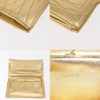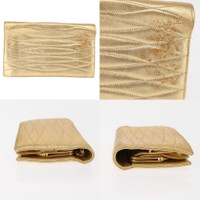 Size (CM): W21 x H13 x D3 cm (Approx.) Size (INCH): W8.3 x H5.1 x D1.2 inch (Approx.) Accessories: None Surface: Loss of shape, Rubbing, Partially peeled Metal parts: Scratches Corners: Rubbing Inside: Rubbing, Slight stain Pockets: Rubbing 2562767 ID: 392-004-021920-D9E1A69383C6 Details Online since:2026-03-26 Categories: women Category: Bags Sub-category: Clutch bags Designer: Chanel Condition: 0 Material: Vegan leather Colour: Gold Width 8.3 in, Height 5.1 in Location: empty Reference: 65359933 Measurements Width: 8.3in Height: 5.1in