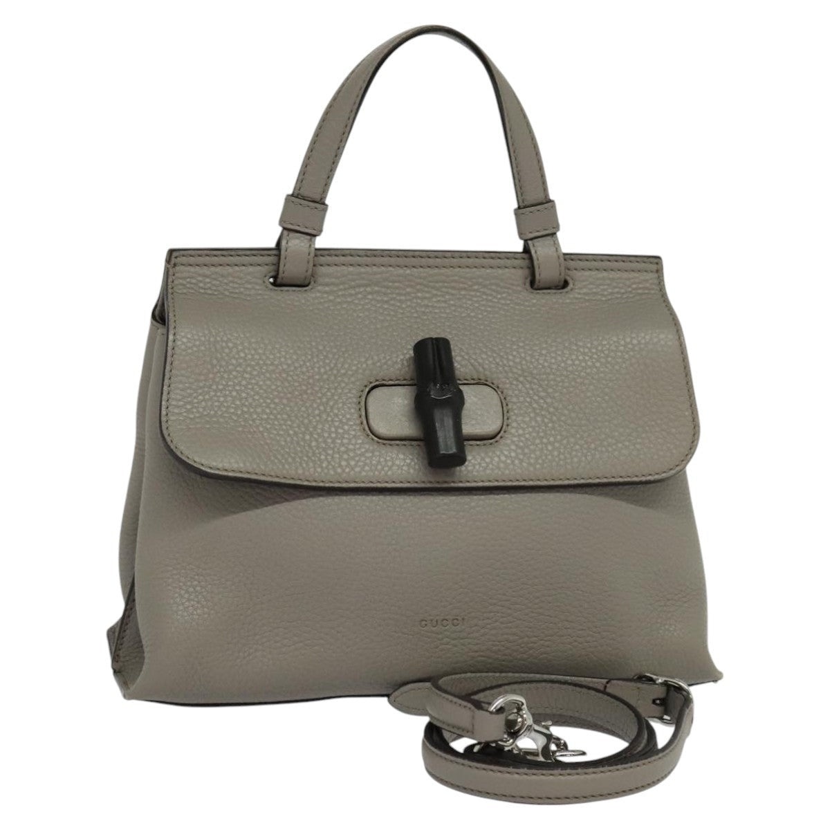 GUCCI Bamboo Daily Hand Bag Leather Gray Silver Size (CM): W27 x H20 x D8 cm Shoulder Drop: 47 - 50cm Handle Drop:10cm (Approx.) Size (IN): W10.6 x H7.9 x D3.1in Shoulder Drop:18.5 - 19.7in Handle Drop:3.9in (Approx.) Accessories: Dust Bag, Shoulder Strap Serial Number: 370831 527066 Overall: Surface: Shape Loss, Rubbing Slight Stain Handle: Rubbing Stain Shoulder Strap: Rubbing, Stain Out Of Shape Metal Fittings: Scratches Corners: Rubbing, Partly Thread Fray, Thread Break Inside: Rubbing, Stain, Partly Printed Initials Pockets: Rubbing, Stain Eastern Is An Authorized Online Retailer Of Luxury Fashion We Guarantee The Authenticity Of All Our Items With Rigorous Verification Processes And Trusted Sourcing Please Carefully Refer To The Photos For The Condition Of The Item Import Charges May Apply For Specific Items And Are The Buyer's Responsibility Sales Are Final Contact Us If You Have Any Questions, We're More Than Happy To Assist!