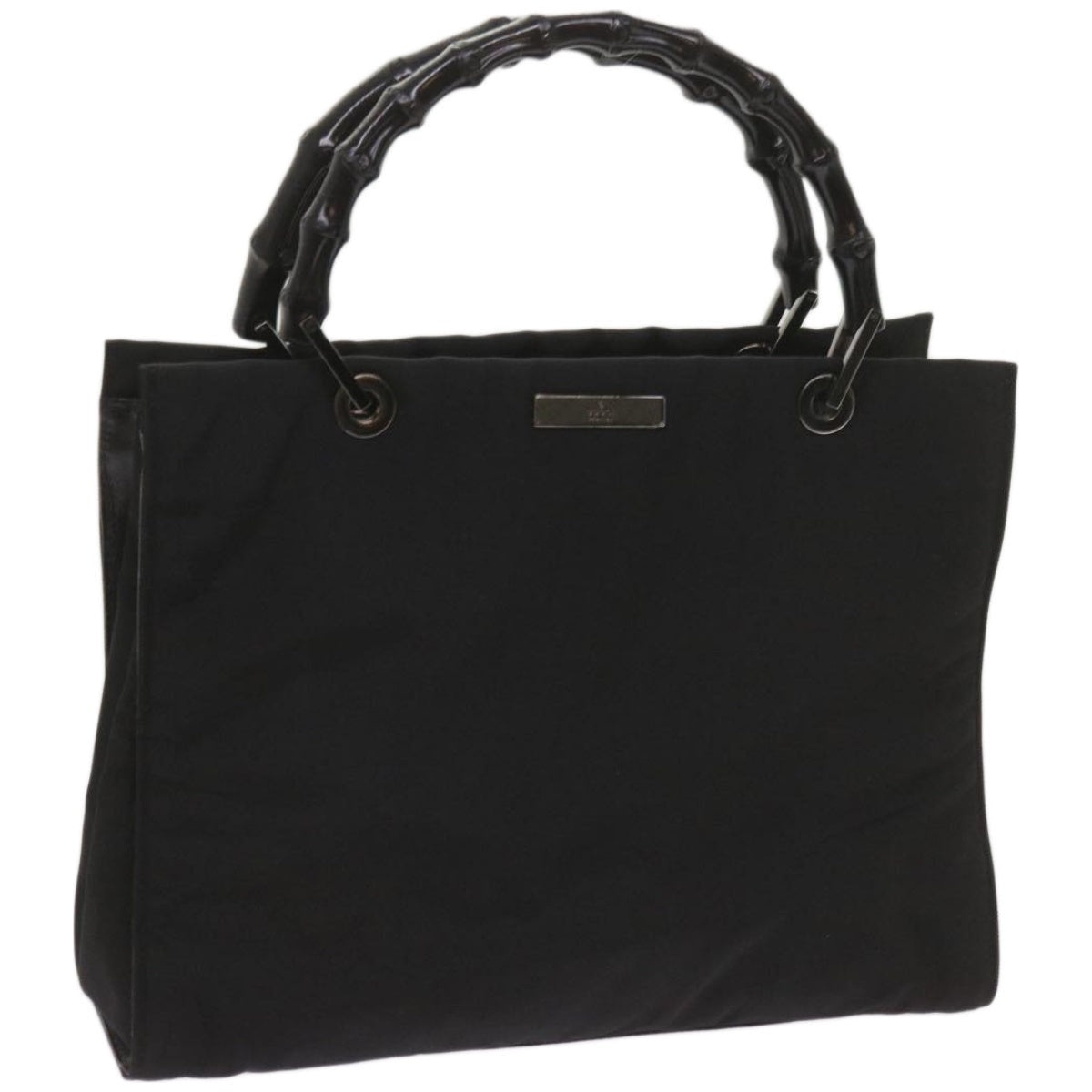 GUCCI Bamboo Hand Bag Canvas Black 002 002
