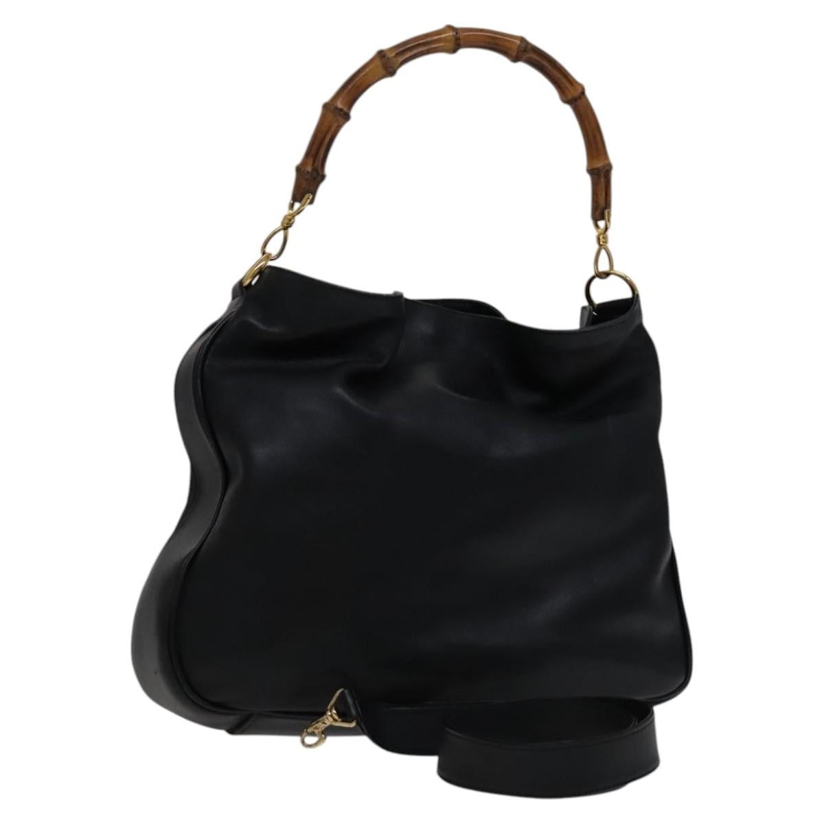 GUCCI Bamboo Hand Bag Leather Black Gold Size (CM): W39 x H33 x D10 cm Shoulder Drop: 40cm Handle Drop:15cm (Approx.) Size (IN): W15.4 x H13.0 x D3.9in Shoulder Drop:15.7in Handle Drop:5.9in (Approx.) Accessories: Shoulder Strap Serial Number: 001 1577 2615 Overall: Surface: Shape Loss, Rubbing Scratches Handle: Rubbing Scratches Shoulder Strap: Rubbing Out Of Shape Metal Fittings: Scratches, Dirt, Slight Painting Off Corners: Rubbing, Scratches Inside: Rubbing, Dirt, Is Peeling, Powder, Slight Sticky Pockets: Rubbing, Stain, Sticky, Is Peeling Eastern Is An Authorized Online Retailer Of Luxury Fashion We Guarantee The Authenticity Of All Our Items With Rigorous Verification Processes And Trusted Sourcing Please Carefully Refer To The Photos For The Condition Of The Item Import Charges May Apply For Specific Items And Are The Buyer's Responsibility Sales Are Final Contact Us If You Have Any Questions, We're More Than Happy To Assist!