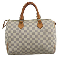 LOUIS VUITTON Damier Azur Speedy 30 Hand Bag N41533 Size (CM): W30 x H21 x D17 cm (Approx.) Size (IN): W11.8 x H8.3 x D6.7in (Approx.) Accessories: None Serial Number: SP2048 Overall: Surface: Shape Loss, Rubbing, Stain Slight Painted Leather: Sun Burn, Rubbing Stain Handle: Sun Burn, Rubbing Stain Metal Fittings: Scratches, Painting Off Corners: Rubbing Inside: Rubbing, Slight Stain Pockets: Rubbing, Slight Stain Is Peeling Eastern Is An Authorized Online Retailer Of Luxury Fashion We Guarantee The Authenticity Of All Our Items With Rigorous Verification Processes And Trusted Sourcing All Items Are Pre-Owned With Signs Of Use Unless Stated Otherwise, Please Carefully Refer To The Photos For The Condition Of The Item Import Charges May Apply For Specific Items And Are The Buyer's Responsibility Sales Are Final Contact Us If You Have Any Questions, We're More Than Happy To Assist!