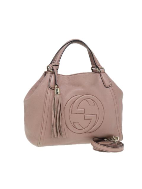 GUCCI Bamboo Hand Bag Leather Pink Gold