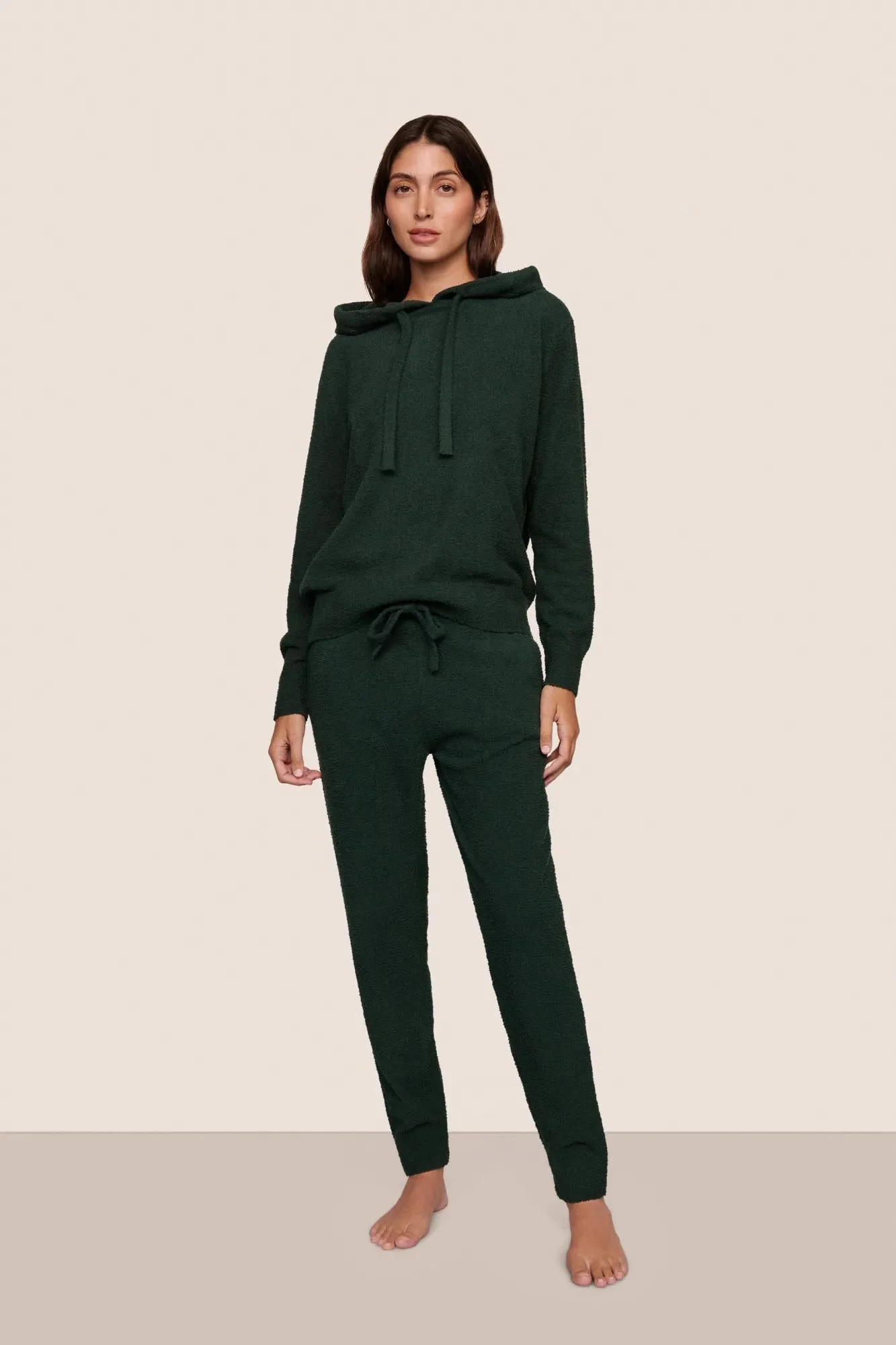 Let's get cozy. Made from 100% recycled polyester, this high rise sweater jogger is easy and comfortable with its elastic waistband, wide drawstring, and front pockets. Perfect to keep warm on cold winter nights, pair it with the matching hoodie (hello, snow day outfit) or mix and match it with your wardrobe. Gift the full set to your favorite person who loves softness (and the planet) just as much as you. Color: Pine DESIGN & FIT - High-rise sweater-knit jogger with elastic waistband and wide drawstring - Front side slant pockets and single back patch pocket - Ankle length - Relaxed Fit — roomy, easy silhouette for effortless comfort FABRIC & CARE - 100% Recycled Polyester - Machine wash cold with like colors; only non-chlorine bleach when needed; remove promptly after wash; lay flat to dry; do not iron - Imported