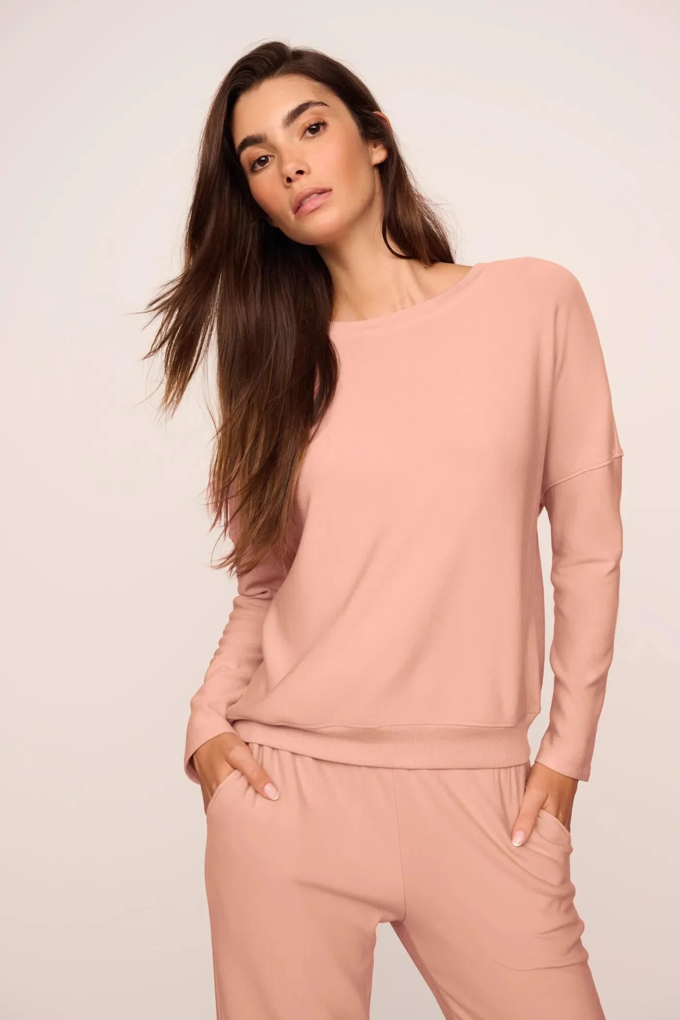 Like wrapping yourself in a cloud. Made from TENCEL™ Modal and a touch of Elastane for stretch and recovery, this super soft fabric is verified by OEKO-TEX® Standard 100, which means it was processed without harmful chemicals. This sweater weather essential features a drop shoulder, boat neck, inserted rib neckband and bottom band, dolman sleeves, and a relaxed, comfortable fit. Complete the look with the matching Softest Sweats Straight-Leg Pant or Jogger. Color: Velvet Pink DESIGN & FIT - Drop shoulder boat neck sweatshirt - Ribbed neckline and bottom band, dolman sleeves - Relaxed Fit — roomy, easy silhouette for effortless comfort FABRIC & CARE - 95% TENCEL™ Modal, 5% Elastane - Machine wash cold with like colors, gentle cycle; tumble dry low; do not bleach; cool iron if needed; remove promptly after wash - Imported