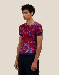 Unisex T-shirt in double-layer digitally printed micro mesh, featuring a distinct all-over print on the top layer and a bottom layer that peeks out from the hem. 92% POLYESTER 8% SPANDEX Produced in China