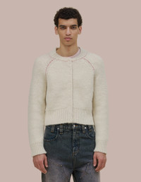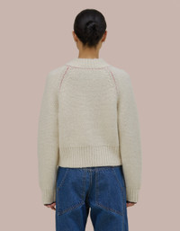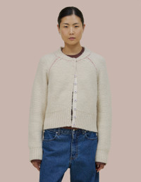 Easy fitting bomber shape jacket in a twisted alpaca/wool boucle yarn. Features an invisible hand sewn metal snap closure and grosgrain placket at front. Jacket is linked together with a contrast yarn. XS: 48.3CM LENGTH, 43.2CM CHEST, 69.9CM SLEEVE, 38.1CM BOTTOMS: 50.2CM LENGTH, 45.7CM CHEST, 72.4CM SLEEVE, 40.6CM BOTTOMM: 52.1CM LENGTH, 48.3CM CHEST, 74.9CM SLEEVE, 43.2CM BOTTOML: 53.9CM LENGTH, 50.8CM CHEST, 77.5CM SLEEVE, 45.7CM BOTTOMXL: 55.9CM LENGTH, 53.3CM CHEST, 80.0CM SLEEVE, 48.3CM BOTTOM 53% ALPACA 47% WOOL Produced in China.
