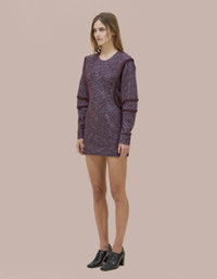 A mini dress featuring dolman sleeves and bound curvilinear seams creating definition as they move across your body. Made from a boiled wool cotton blend. Model wears size small 53% WOOL 47% COTTON Produced in China