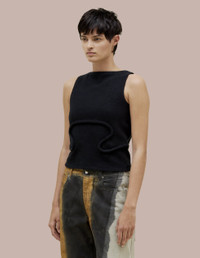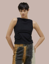 This tank features a boat neck with a boxy fit and bound curvilinear seams creating definition as they move across your body. Made from a boiled wool cotton blend. XS: 21.75 center front length, 16.25 chest width, 9 neck width seam S: 22.37 center front length, 17.25 chest width, 9.25 neck width seam M: 23 center front length, 18.25 chest width, 9.5 neck width seam L: 23.62 center front length, 19.25 chest width, 9.75 neck width seam XL: 24.25 center front length, 20.25 chest width, 10 neck width seam Model wears size small 53% WOOL 47% COTTON Produced in China.