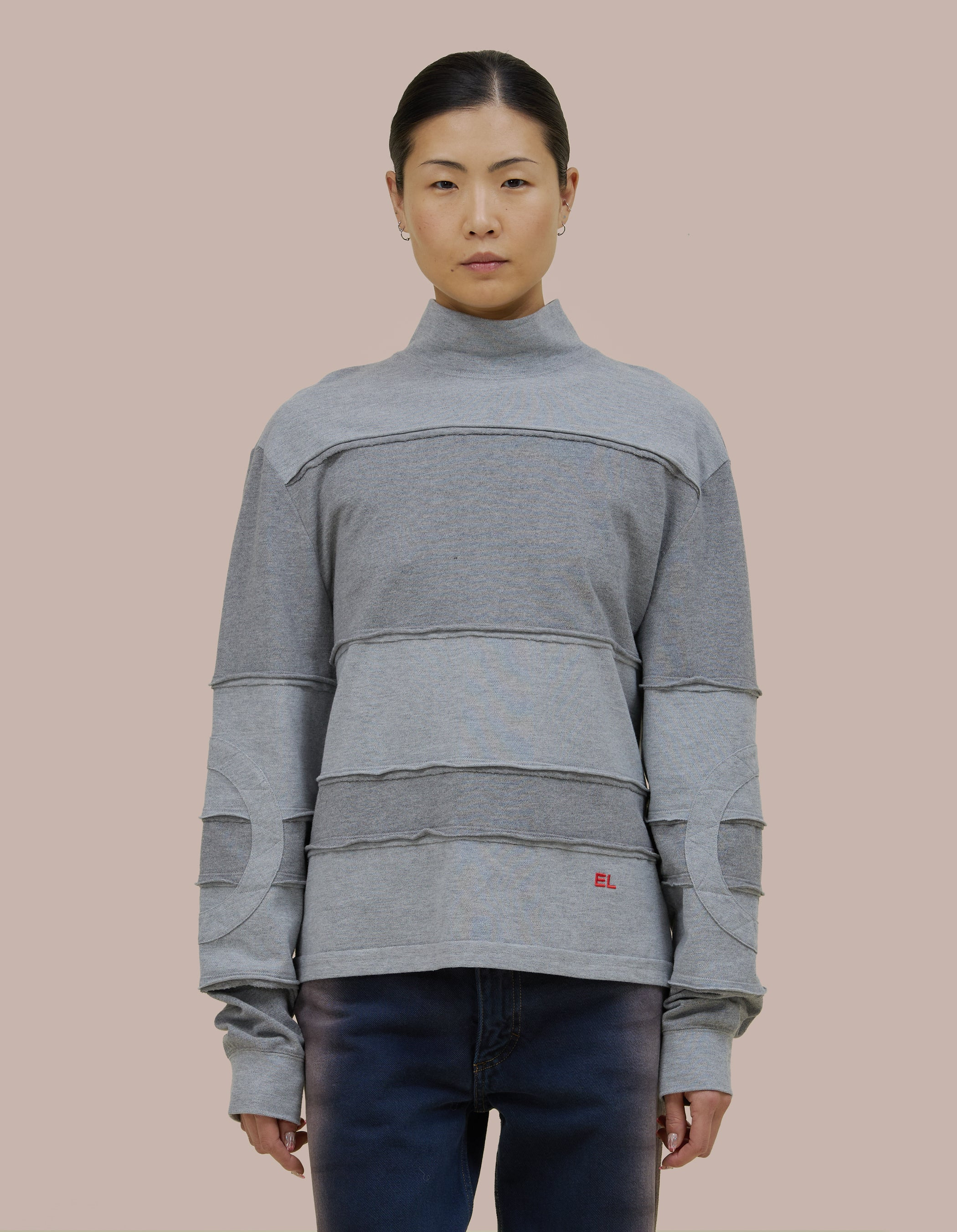 A relaxed-fit long sleeve turtleneck with a two way metal zipper along the center back. Stripes are assembled from individual strips, finished externally to echo our signature lapped seams. Red "EL" logo embroidery at the lower left abdomen. XS: 19.5 chest width, 24.5 front length, 7 neck width S: 20.5 chest width, 25.12 front length 7.25 neck width M: 21.5 chest width, 25.75 front length, 7.5 neck width L: 22.5 chest width, 26.37 front length, 7.75 neck width XL: 23.5 chest width, 27 front length, 8 neck width Models wear size medium 100% Cotton Produced in China.