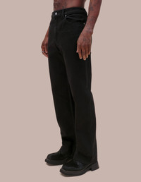 Our classic high waisted four pocket jean with a wide leg. Back pockets are cut in signature "L" shape. Cut in almost black light enzyme washed denim. 100% cotton, made in Los Angeles. Unisex fit, female model wears size 27, male model wears size 30. 334 EL CORE AB 25: 25" waist, 11.5" rise, 29.5" inseam, 18.5" hem circumference 26: 26" waist, 12" rise, 29.5" inseam, 19" hem circumference 27: 27" waist, 12" rise, 29.5" inseam, 19.5" hem circumference 28: 28" waist, 12" rise, 29.5" inseam, 19.5" hem circumference 29: 29" waist, 12" rise, 30" inseam, 19.5" hem circumference 30: 30" waist, 12" rise, 31" inseam, 20" hem circumference 31: 31" waist, 13" rise, 31" inseam, 20.5" hem circumference 32: 32" waist, 13" rise, 31" inseam, 20.5" hem circumference 33: 33" waist, 13" rise, 31" inseam, 21" hem circumference Mahi is 6'1" and wears a size 30. Santana is 5'10" and wears a size 27. 100% Cotton Produced in USA