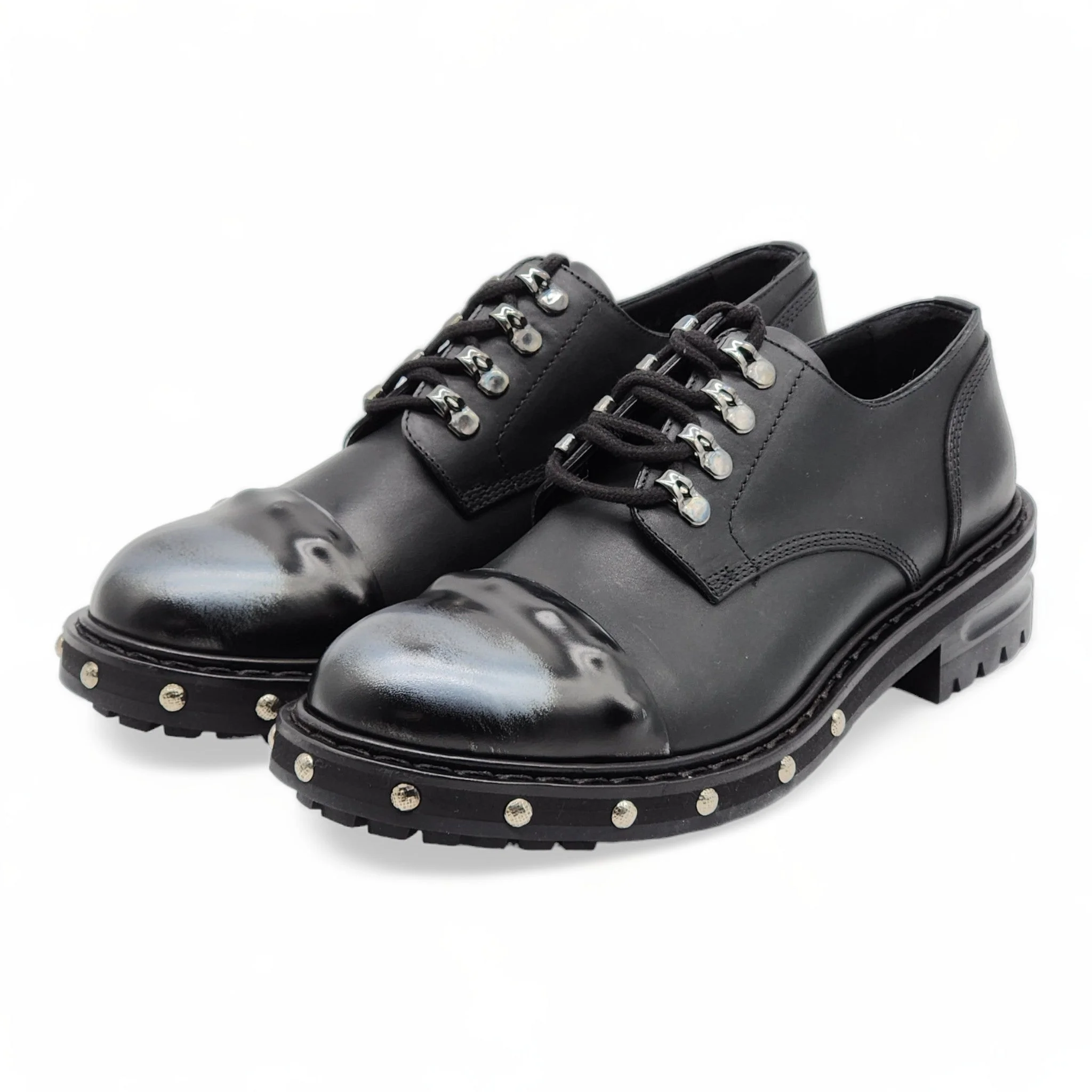 Classic design by Alexander McQueen. The Hobnail in black calf leather. Rubber outsole. Made in Ital.y Condition: Brand new with box. Sizes available: 39, 40.