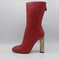 High Leather Boots Red with silver heel EU 40 US 10