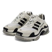 Balenciaga x Adidas Triple S Collaboration Sneakers New WITHOUT box. slightly yellow discoloration as shown in the pictures. Size 35 (5 US). Made in China. * New WITHOUT box. * The chunky sneaker dresses in a white and black color scheme, akin to the classic adidas Superstar. * Three Stripes branding appears on the side panel, as well as a BALENCIAGA wordmark. * More co-branding is found on the heel panel: an adidas Trefoil above “balenciaga” in all lowercase.