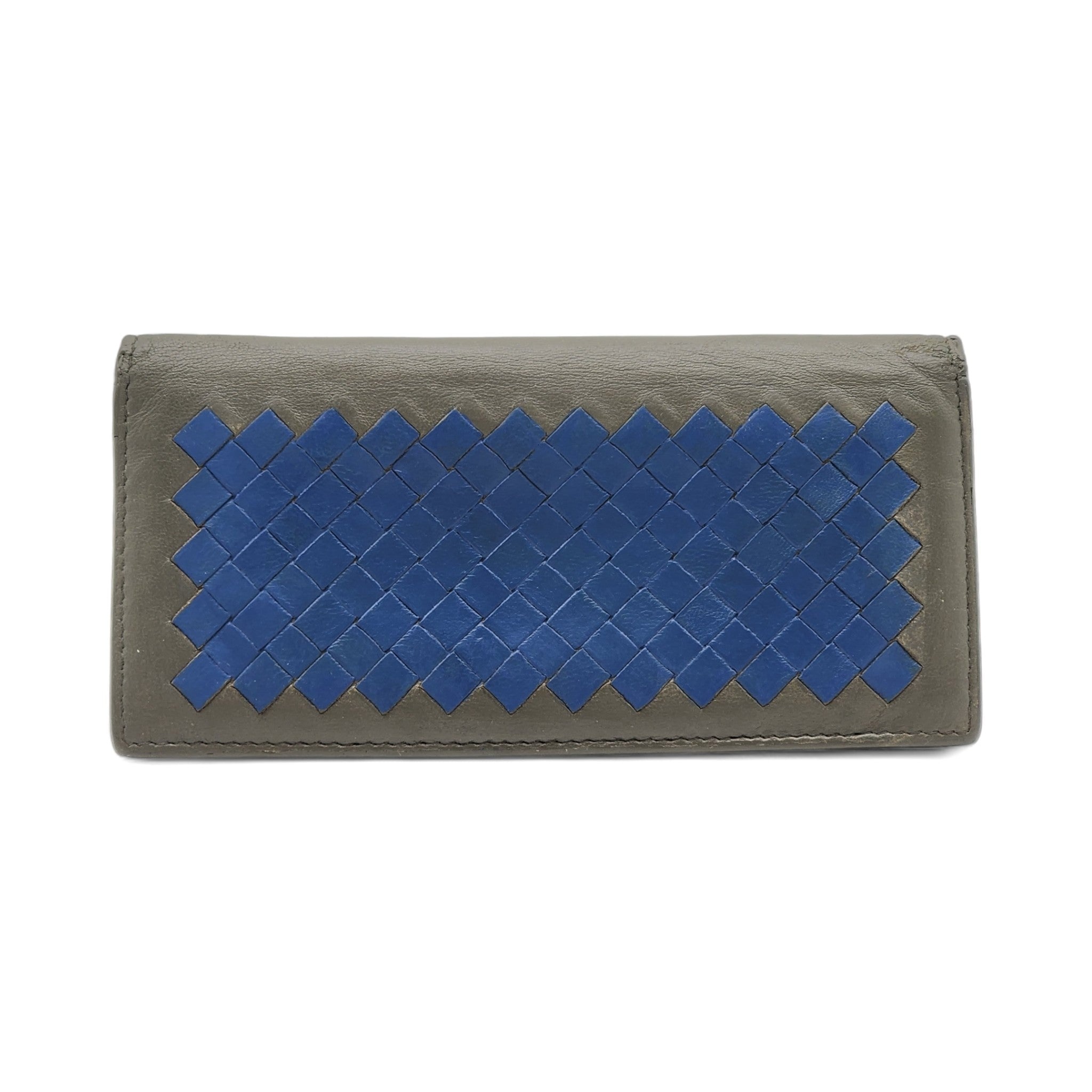 Intrecciato leather long wallet . Leather interior. Multiple card slots. Made in Italy. Condition: Fair condition. Minor crack on piping.