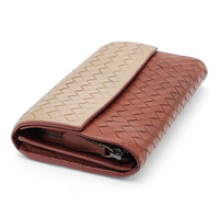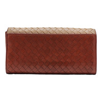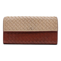Intrecciato Unisex Leather Long Wallet 150509 Beige Brown