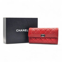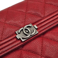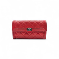 Size 7 x 4 inches Elevate your accessories collection with this stunning Chanel Boy Long Flap Wallet, crafted from durable and luxurious red caviar leather. The quilted design paired with the signature Boy clasp in silver-tone hardware exudes timeless sophistication, making this a must-have for any Chanel lover. * Red caviar leather with quilted design * Silver-tone Boy CC clasp * Multiple card slots, zippered coin compartment, and bill compartments * 22 Series * Comes with original Chanel box This wallet is in good pre-owned condition. The leather retains its structure with light, normal signs of use, corners and edges remain strong, interior is clean, and hardware shines beautifully. Please review photos for full details. There is some rubbing on the corner and the lining in one of the pockets is ripped. The interior flap has some markings on the top left corner as shown in the last picture. We have been in business since 1999, specializing in luxury goods, and we only deal in 100% authentic items. We never sell fakes, never did, and never will. Buy with confidence. Due to limited margins on high-end designer items, pricing is firm. This Chanel Boy wallet is a chic, versatile accessory—perfect for everyday use or as an elegant evening companion. Availability is limited, so secure it today.