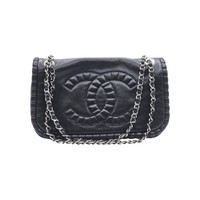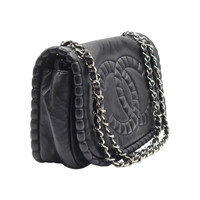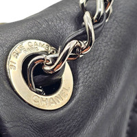 Chanel On The Bund Medium Black Leather Flap Shoulder Bag Silver Chain – Preowned A classic Chanel piece with a bold signature look, this black leather flap bag features the iconic oversized stitched CC logo, a silver-tone chain strap, and a softly structured silhouette. Its timeless design and versatile shoulder style make it an elegant choice for both everyday wear and evening use. Pre-owned with visible signs of gentle use and creasing. Please review all photos carefully, as they are part of the description and show the exact item you will receive. * Black leather exterior * Signature oversized stitched CC logo front * Flap shoulder bag silhouette * Silver-tone chain and leather shoulder strap * Magnetic snap flap closure * Light beige textile lining * Interior zip pocket * Chanel Made in Italy leather tag inside * Serial sticker present, 13 series - 2010 release (Late Karl Lagerfeld era classic Chanel) * Made in Italy * Measurements: approx. 13” W x 8” H x 6” D (33 cm x 20.3 cm x 15.2 cm) * Strap drop: approx. 10” single / 20” doubled This Chanel bag combines iconic house detailing with a sleek yet practical shape that feels effortlessly chic and easy to style. All items are 100% authentic, carefully inspected, and securely packaged for safe delivery. Price is firm due to small margins.