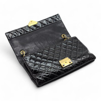 A rare and eye-catching Chanel Pagoda Accordion Flap crafted in glossy black quilted patent leather. This distinctive accordion-style silhouette offers structured elegance with a bold architectural edge, while remaining unmistakably Chanel. A refined statement piece that transitions seamlessly from daywear to evening sophistication. The high-shine patent finish paired with signature CC hardware delivers timeless luxury with modern presence. Its elongated shape and accordion construction provide both style and practical organization. Condition Great pre-owned condition. Minor scuffs on patent exterior and interior leather (see photos). Silver-tone hardware shows light discoloration. No major flaws. Structure remains strong and beautifully preserved. Details • Brand: Chanel • Model: Pagoda Accordion Flap • Color: Black • Material: Quilted patent leather • Hardware: Silver-tone CC • Interior: Leather-lined • Size: Approx. 12.25” L x 7” H x 2” D (31 x 18 x 5 cm) • Includes: Dust bag Why This Piece Stands Out The Pagoda Accordion Flap is a less commonly seen Chanel design, making it highly desirable among collectors. Its sleek profile, structured accordion sides, and glossy patent finish create a sophisticated yet statement-making bag that elevates any outfit. Since 1999, we have proudly served customers worldwide with a strict commitment to authenticity, quality, and service. All items are 100% genuine and carefully inspected before shipment. Serious buyers only. Authenticity guaranteed.