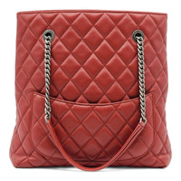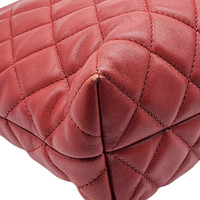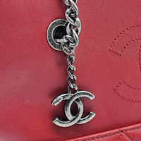 Red Lambskin Leather. Ruthenium hardware. CC metal charm. Fabric interior. Measures: 13" x 13" x 4" Handle Drop: 7.5" Series: 23 Condition: Excellent condition with some exterior scuffs.