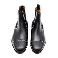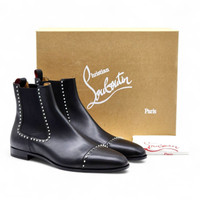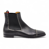 Christian Louboutin Black Leather Studded Chelsea Boots – Men’s EU 45.5 (US 12.5) Step into luxury with these Christian Louboutin Chelsea Boots, crafted from premium black calfskin leather and accented with signature silver-tone studs. The iconic red lacquered sole adds unmistakable Louboutin style, blending sleek sophistication with bold edge. Details: • Brand: Christian Louboutin • Style: Studded Chelsea Boots with cap toe • Color: Black with silver-tone studs • Upper: 100% Calfskin leather • Lining/Insole: Smooth leather for comfort • Outsole: Signature red lacquered leather sole • Closure: Pull-on with elastic side panels • Heel: Low stacked heel • Size: EU 45.5 / US 12.5 Men’s • Made in Italy Perfect for formal events or upscale casual wear, these boots embody Parisian craftsmanship with luxurious materials, meticulous detailing, and a timeless silhouette. Why Buy From Us: Trusted since 1999, we offer only 100% authentic designer goods with flawless reviews. Buy with confidence