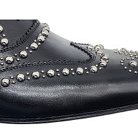 Make a bold statement with the Christian Louboutin Charlie Clou Studded Oxford Shoes , a perfect blend of classic sophistication and edgy detailing . Crafted from premium black leather , these oxfords feature sleek stud embellishments along the toe cap and sides, adding a modern, rebellious touch to a timeless silhouette. The polished finish and almond-toe design make them versatile for both formal and fashion-forward occasions, while the iconic red sole ensures a signature Louboutin look. Details: • Brand: Christian Louboutin • Model: Charlie Clou Studded Oxford Shoes • Material: Smooth Leather with Studded Detailing • Color: Black • Toe Shape: Almond • Sole: Signature Red Bottom • Size: 42 (US 9) • Condition: New / Minor marks on the leather as shown in the pictures. These standout oxfords are the perfect combination of luxury and attitude , making them a must-have for any high-fashion wardrobe.