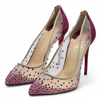 Christian Louboutin Follies Strass Crystal Pumps - Mesh and Leather - Nude 35.5