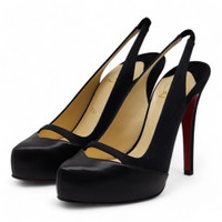 Christian Louboutin Sandy Pumps 120mm heel in black. Store price: $895. Fabric, suede and leather upper, leather insole, leather outsole. Signature Louboutin red bottoms. Heel height 120mm (4.75 inches). Made in Italy. Size: 36.5 (6 US) Condition: New with the box.