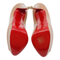 Christian Louboutin Fetish Peep Pumps 150mm – Patent Leather – Nude – 36.5 (6 US) Make a bold statement with the Christian Louboutin Fetish Peep Pumps, an ultra-glamorous design that exudes confidence and elegance. Crafted from luxurious nude patent leather, these sky-high pumps feature a towering 150mm (6-inch) stiletto heel, a hidden platform for added comfort, and a classic peep-toe silhouette. Finished with the iconic red sole, these heels are a must-have for any Louboutin lover. Details: • Brand: Christian Louboutin • Style: Fetish Peep Pumps • Material: Patent Leather • Color: Nude • Heel Height: 150mm (6 inches) • Platform Height: Approx. 1.2 inches • Toe Style: Peep Toe • Sole: Signature Red Bottom • Size: 36.5 (US 6) • Condition: New These statement-making pumps are perfect for special occasions, evening wear, or whenever you want to turn heads!
