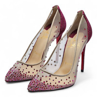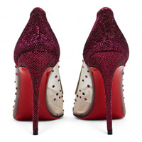 Mesh upper with crystals. Leather insole and outsole. Heel height 100mm. (4 inches). Made in Italy. Size: 35.5. Condition: New with the box and dustbag. The box is slightly damaged.