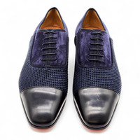 Brand: Christian Louboutin Model: Greggo Size: EU 41.5 / US 8.5 Material: Suede, Leather, Woven Fabric Condition: Brand new, unused. Sample. The Christian Louboutin Greggo Oxford Shoes redefine classic formalwear with a unique mix of suede, leather, and woven fabric, offering a bold yet elegant look. Designed with a sleek, elongated silhouette and finished with the signature red sole, these shoes bring sophistication and modern style to any wardrobe. • Premium mixed-media construction, combining suede, leather, and woven fabric for a distinctive texture • Sleek and elongated silhouette, perfect for refined formal and business attire • Deep blue color, adding a modern touch to a classic Oxford design • Signature red sole, a hallmark of Louboutin’s luxurious craftsmanship • Includes original box, making it ideal for collectors or gifting We understand that everyone looks for the best deal, and we have already priced this item competitively—our price is firm, ensuring fair value for an authentic designer piece.