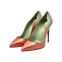 Christian Louboutin Hot Chick 100 Degrade Patent Blush Green Pumps Red Bottom EU 36.5 US 6.5 UK 3.5 New Authentic Christian Louboutin Hot Chick 100 pumps crafted in Italy from glossy degrade patent leather. This striking colorway features a soft blush pink body with contrasting mint green heel and lining, finished with the unmistakable red lacquered sole. The Hot Chick 100 is one of Louboutin’s most recognizable red bottom heel styles, known for its sculpted curves, scalloped topline, and sharp pointed toe silhouette. Condition New with original box and dust bag. Details • Size EU 36.5 / US 6.5 / UK 3.5 • Heel height: approx. 100mm (3.9”) • Blush pink and mint green patent leather • Degrade finish • Pointed toe • Scalloped topline • Stiletto heel • Signature red lacquered sole • Leather lining and insole • Made in Italy A distinctive designer pump ideal for events, evening wear, and statement styling. Authenticity guaranteed. Firm price due to limited availability.