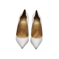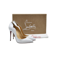Christian Louboutin Hot Chick 100 White Patent Pumps Red Bottom Heels EU 37 US 7 UK 4 New Authentic Christian Louboutin Hot Chick 100 pumps crafted in Italy from glossy white patent leather. This iconic pointed-toe silhouette features the signature scalloped topline and the unmistakable red lacquered sole, delivering sharp elegance with modern edge. The Hot Chick 100 is one of Louboutin’s most recognizable red bottom heel styles, known for its sculpted curves and refined stiletto profile. Condition New with original box and dust bag. Details • Size EU 37 / US 7 / UK 4 • Heel height: 100mm (approx. 3.9”) • White patent leather upper • Pointed toe • Scalloped topline • Stiletto heel • Signature red lacquered sole • Leather lining and insole • Made in Italy Ideal for weddings, formal events, bridal styling, and statement occasions. Authenticity guaranteed. Firm price due to limited availability.