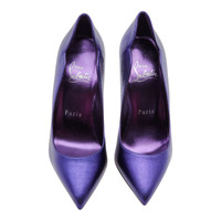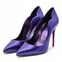 Christian Louboutin Hot Chick Pumps in purple leather. Store price: $845 FW 2024 Collection. Leather. Heel height 100mm. (4 inches) Made in Italy. Condition: New with the box. Minor imperfections as shown in the pictures. Size: 34 (4 US) Style Code: 32401364191 Notes from Louboutin: The Hot Chick pump is an iconic Maison Christian Louboutin design with a low-cut vamp, a pointed toe and V-shaped notches under the ankle. Set on a 100 mm heel, the striking delicacy of its finishes highlight its tone-on-tone insole. This timeless, elegant style is crafted in textured Jacaranda purple nappa leather.