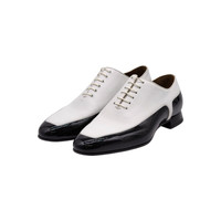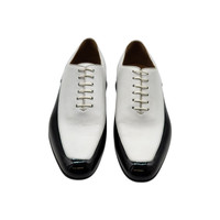 Christian Louboutin Lace-Up Oxford Shoes Leather Black White EU 42 US 9 - New Sharp contrast and unmistakable attitude define this elegant lace-up from Christian Louboutin. Crafted in Italy from smooth white leather paired with glossy black patent sections, the formal profile is completed by the house’s iconic red sole. A confident statement piece suited for evening wear, events, or anywhere presence matters. Condition New with box. * Men’s dress shoe * Black patent and white smooth leather upper * Classic lace-up oxford construction * Polished finish * Signature red leather outsole * Elongated square toe * Low stacked heel * Size EU 42 - US 9 - UK 8 * Made in Italy * Original box included Why We Love It The red sole is one of the most recognizable signatures in footwear. Combined with the dramatic black-and-white contrast, this pair delivers timeless elegance with bold personality. About Us Since 1999, we have proudly served customers worldwide with a strict commitment to authenticity, quality, and service. Every item is 100% genuine and carefully inspected before shipment. Price is firm due to limited availability.