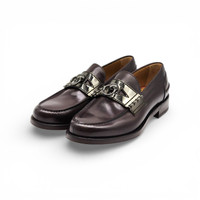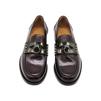 Christian Louboutin Leather Loafers with Metal Ornament – Brown – EU 41 / US 8 – New With Box These Christian Louboutin loafers showcase refined Italian craftsmanship with a clean, elegant silhouette and signature luxury detailing. Crafted from smooth dark brown leather, the design is elevated by polished silver-tone metal hardware, offering a bold yet sophisticated look suitable for formal wear and elevated everyday styling. The iconic red leather sole completes the design with an unmistakable Louboutin signature. This pair is new and unworn, and includes the original box. * Size EU 41 / US 8 / UK 7 * Dark brown smooth leather upper * Polished silver-tone metal ornament * Smooth leather lining * Leather insole * Signature red leather sole * Low stacked heel * Made in Italy * Condition: New with box We have been in business since 1999 with flawless customer feedback. All designer items are 100% authentic, carefully inspected, and securely packaged for safe worldwide delivery.