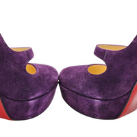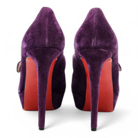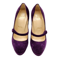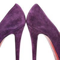 Christian Louboutin Pumps 'Relika' in purple suede with 140mm heel. Store price: $750. Size: 36.5 (6 US) Suede upper, leather insole, leather outsole. Signature Louboutin red bottoms. Heel height 140mm (5.5 inches). Made in Italy. Condition: New with the box. Minor rubbing on the suede as shown. Barely visible when shoes are worn.