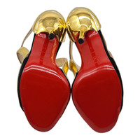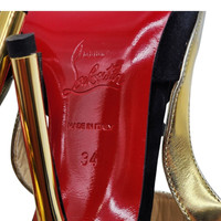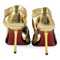 Christian Louboutin Rotonda sandals in gold. F/W 2018 Collection. Calf leather in metallic finish. Signature Louboutin red bottoms. Heel height 100mm. (4 inches). Made in Italy. Size: 34 (4 US). Condition: New without the box. Minor marks and discoloration as shown on the pictures.