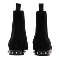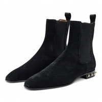 Christian Louboutin So Roadie Flat Crosta – Black Suede – EU 39.5 / US 6.5 – $1,195 The Christian Louboutin So Roadie Flat Crosta is a bold and modern take on the classic Chelsea boot. Crafted from black suede (Crosta), this sleek ankle boot features traditional elastic side panels for easy slip-on wear, delivering both comfort and timeless style. Adding an unexpected edge, the design is finished with signature metal spikes embellishing the back of the heel, giving this minimalist silhouette a distinctive, rebellious touch. Completed with the iconic red lacquered sole, the So Roadie perfectly balances luxury craftsmanship with contemporary attitude. • Material: Suede (Crosta) • Color: Black • Style: Chelsea-style flat ankle boots • Design: Elastic side panels and spiked heel detail • Sole: Signature red lacquered sole • Size: EU 39.5 / US 6.5 • Price: $1,195 • Made in: Italy