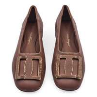 Ballet flats in lambskin leather. Size: 9.5 Style: Myrna Signature Ferragamo buckle with logo. Made in Italy. Condition: Brand new with box and dustbag.