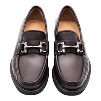 Elevate your wardrobe with the understated luxury of these Salvatore Ferragamo Glasgow loafers, crafted from premium black calfskin leather with a sleek, slip-on design. A refined choice for the discerning gentleman, this style features a rubber outsole for all-day comfort, grip, and flexibility—perfect for office wear or upscale casual occasions. This pair is in a rare Size 7.5 EE (Wide Width), offering a generous and comfortable fit without compromising Ferragamo’s renowned craftsmanship and silhouette. Product Features: * Model: Glasgow * Style: Loafer / Slip-On * Color: Brown * Upper: Genuine Calfskin Leather * Outsole: Durable Rubber * Lining: Leather * Size: UK 7.5 EE / US 8.5 EE (Wide Width) * Country of Origin: Made in Italy * Condition: Brand new in original Ferragamo box MSRP: $950 Timeless, versatile, and built for comfort—these Ferragamo Glasgow loafers are a perfect balance of sophistication and practicality. We are a trusted, family-run business with flawless reviews since 1999. Authenticity and customer satisfaction are always guaranteed.