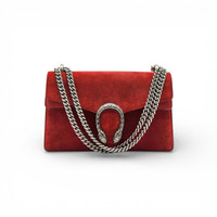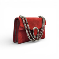 Gucci Dionysus Suede Shoulder Bag – Vulcanic Red – Silver Hardware This Gucci Dionysus shoulder bag is crafted from luxurious vulcanic red suede with smooth leather trim, finished with the iconic antiqued silver-tone tiger head spur closure inspired by Greek mythology. The structured silhouette and sliding chain strap allow for shoulder or crossbody wear, making this piece both elegant and versatile. The bag is new, with minor rubbing visible on the suede, as shown in the pictures. This is limited to light surface contact consistent with handling and does not affect the structure, function, or overall presentation of the bag. The interior is clean and unused, and all hardware is fully functional. Product Details * Suede exterior with leather trim * Signature Dionysus tiger head spur closure * Silver-tone hardware * Sliding chain strap for shoulder or crossbody wear * Front flap closure * Made in Italy Product Measurements * Width: 12 in / 30.5 cm * Height: 7 in / 17.8 cm * Depth: 4 in / 10.2 cm Authenticity Details * Style Code: 400249 498879 This item is 100% authentic and has been carefully inspected prior to listing. We specialize exclusively in authentic luxury designer goods and stand behind every item we sell. All orders are professionally packaged and shipped with care. Due to the condition and market value of this piece, pricing is firm. A highly sought-after Gucci style that remains a staple in any luxury collection.